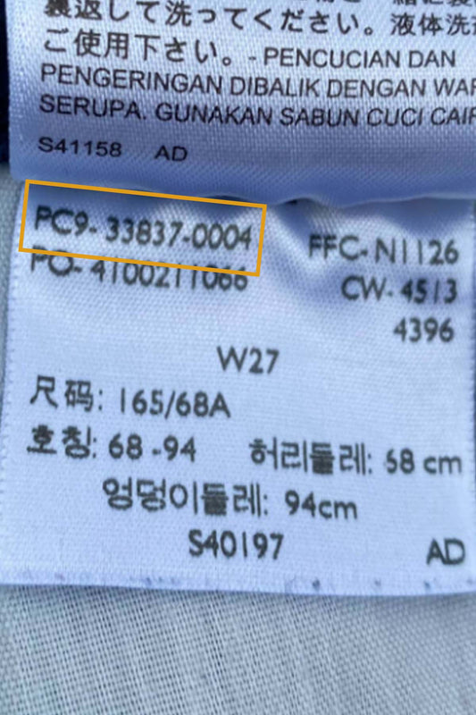 Want a special Levi's product you had purchased a long time ago? You can look it up at your product care label and look up at the PC9 mostly on left top of the corner. You will find the product code (PC9) in the box followed by 5 numbers(Style Numbers) a dash and 4 more numbers (Color).