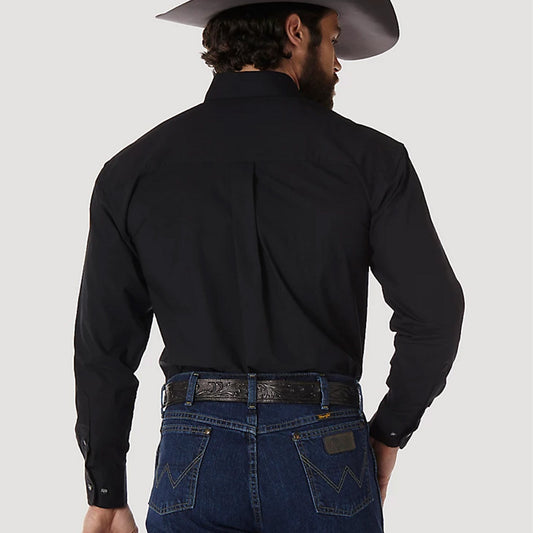 Wrangler® Men's George Strait® Solid Relaxed Fit Long Sleeve Shirt - Black