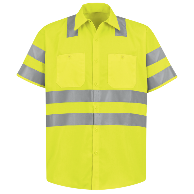 Camisa de trabajo de manga corta amarilla de alta visibilidad para hombre Red Kap - Tipo R, clase 2 - Amarillo fluorescente