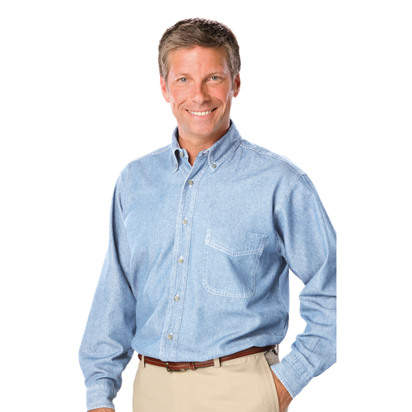 ¡Esta elegante camisa te permitirá arriesgarte a usar jeans! Esta camisa de mezclilla premium de manga larga de 7 oz para hombre seguramente hará una declaración de moda audaz. Hecha de 100 % algodón y lavada con arena para mayor suavidad y control del encogimiento, esta llamativa prenda tiene varias características: cuello abotonado, canesú doble en la espalda, dos pliegues laterales en la espalda, un bolsillo de parche, puños ajustables y una tapeta con botones en las mangas. De corte clásico, está disponible en Faded Blue o Vintage Blue y en tallas XS-8XL, Talls LT-3XLT.