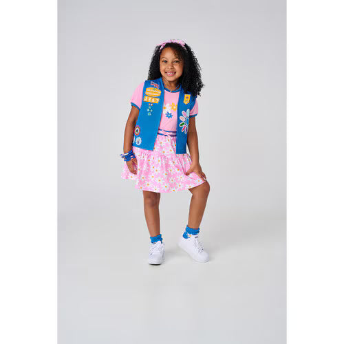 Looking for a way to add some fun to your Daisy's wardrobe? This easy-fitting floral skirt features a comfortable elastic waistband with adorable stripe and bow detail. The print, created just for Girl Scout Daisies, includes a repeating daisy motif and “Girl Scout Daisy” text.