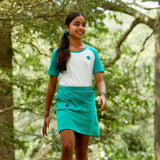 With modern eco-friendly fabric and retro raglan sleeve style, this tee is in a league of its own. The high-low silhouette makes it perfect to pair with our slim knit pants for a troop meeting, though we’re also fans of the classic jeans and tee look. Made with eco-conscious fabric in a super soft jersey knit, it’ll quickly become your favorite tee. Show your Junior Girl Scout spirit in this white tee accented with a solid green trefoil. Details include a green crew neck collar and raglan sleeves with contrast stitch and a curved hem. Sleeves fall above elbow. Traditional fit. Made of cotton (60%) and recycled polyester (40%) jersey knit. Imported.