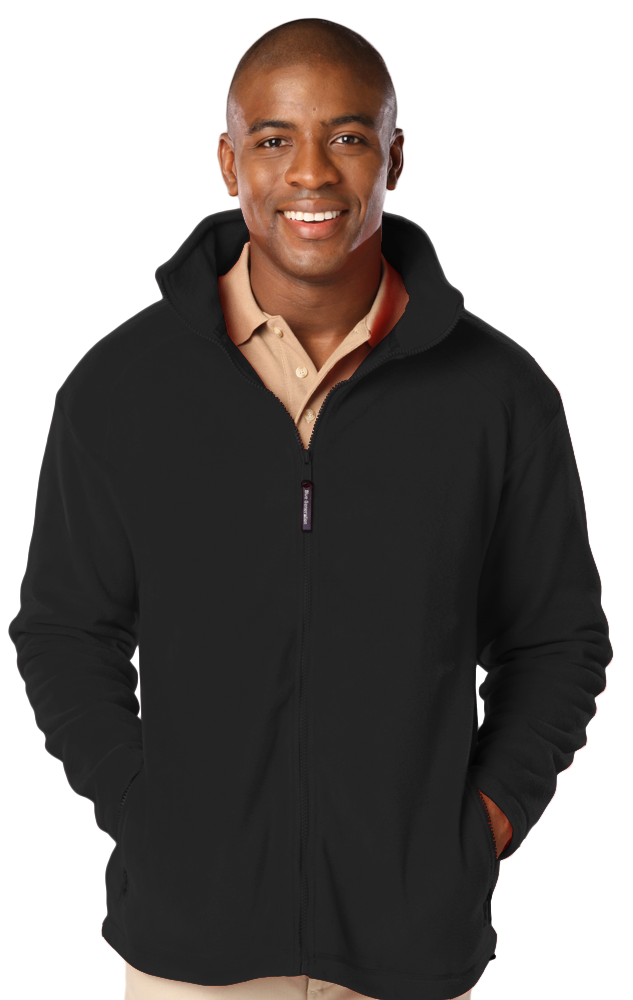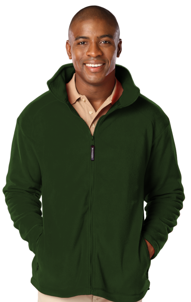 Pull off an incredible outdoor look thanks to this men's mid-weight full-zip jacket with matching color nylon zipper. Made of 100% polyester, this stylish 9.6 oz. jacket has an anti-pill micro fleece designed for warmth and comfort. It features two front zip pockets, a stitched shoulder yoke and an adjustable bungee drawstring. It comes in several colors and in sizes from S to 6XL. Dress to impress today!